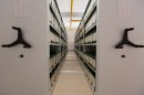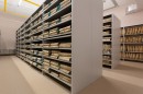 Внутреннее содержание стеллажей спроектировано относительно нестандартных размеров архивных коробов, чтобы не было потери полезного пространства.